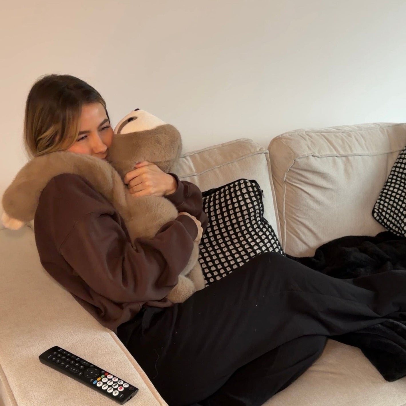 That’s why we designed our weighted animals differently. Sunnie the Sloth has extra-long, weighted arms that wrap around you and actually stay put while you work, read, or scroll your phone. Sunnie is like a wearable weighted blanket, but so much more cuddly and practical!